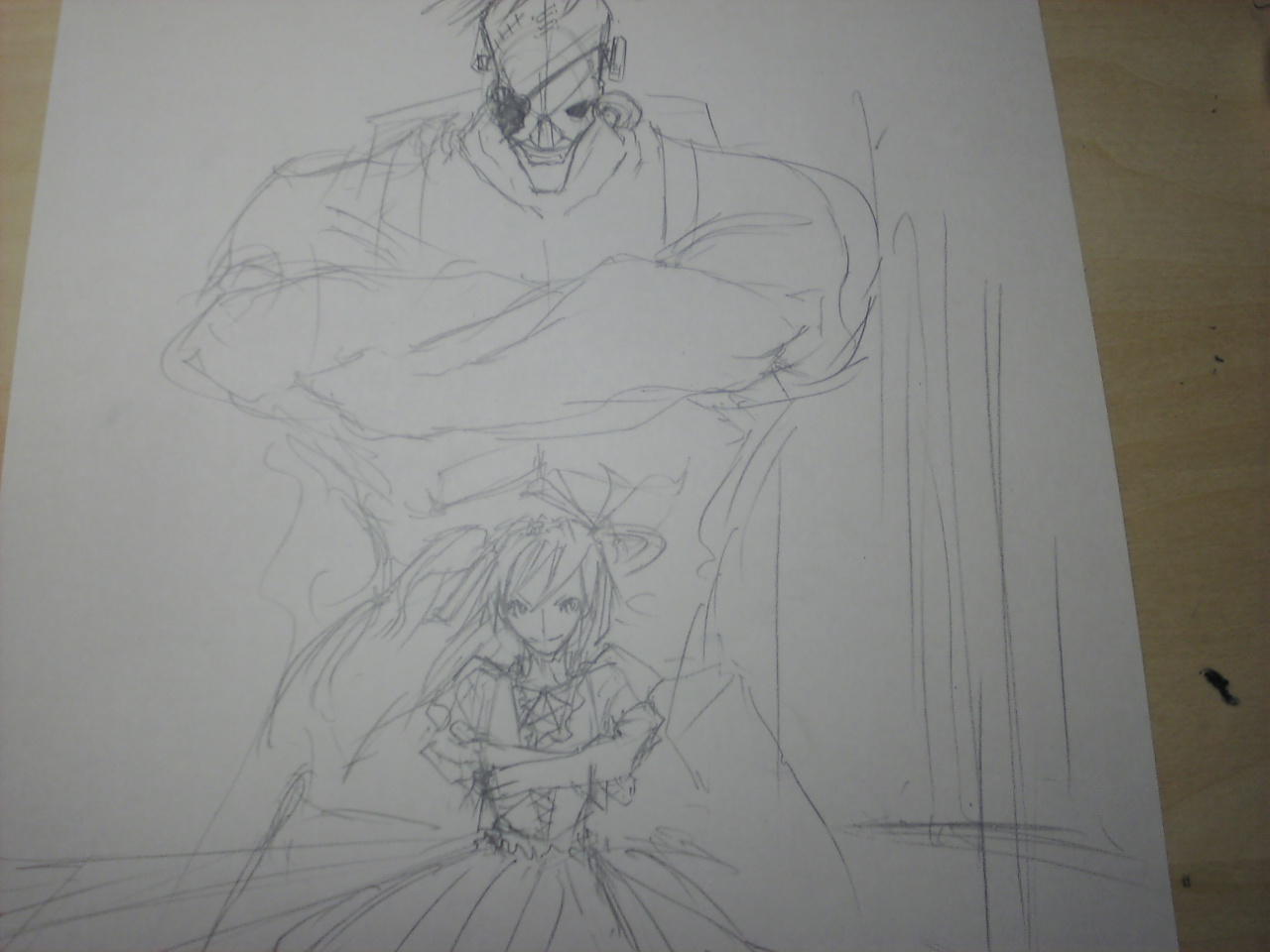 ↓背景入れたイラストを描いていこうと思い描いてる絵(途中)